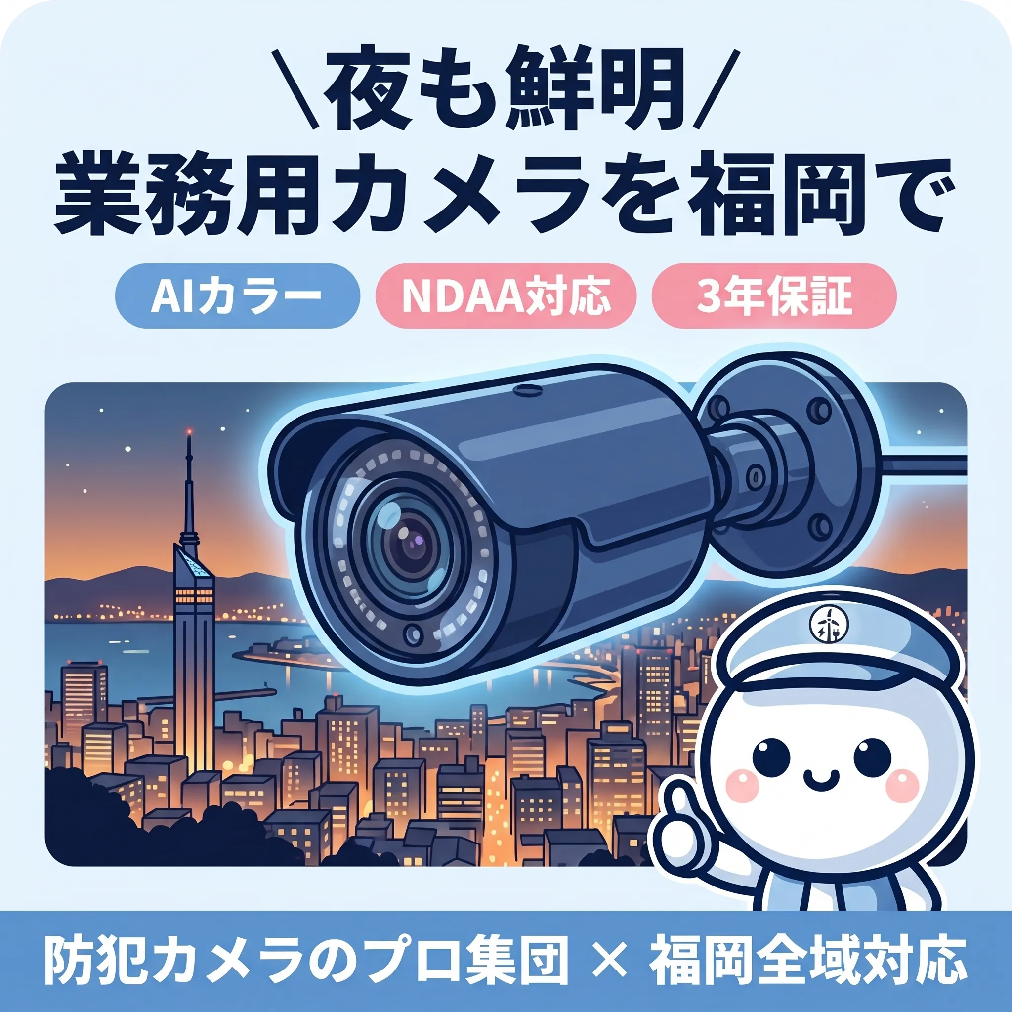 防犯カメラの分野では、業務用品質をもっと身近に届けたいと考えています。AIカラー・PoC省配線・NDAA対応・3年保証など、本物の業務用機器を職人直営価格でご提供します。