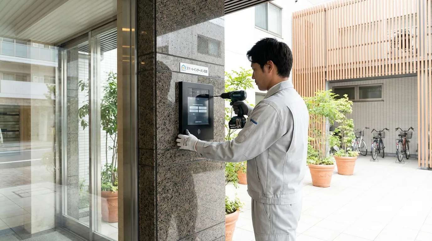 モニターで来訪者を確認できるカメラ付きインターホンへの交換で、防犯性を大幅にアップ。スマホ連携モデルなら外出先からも確認可能です。